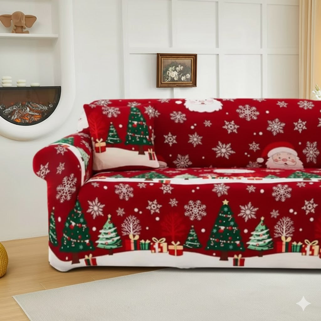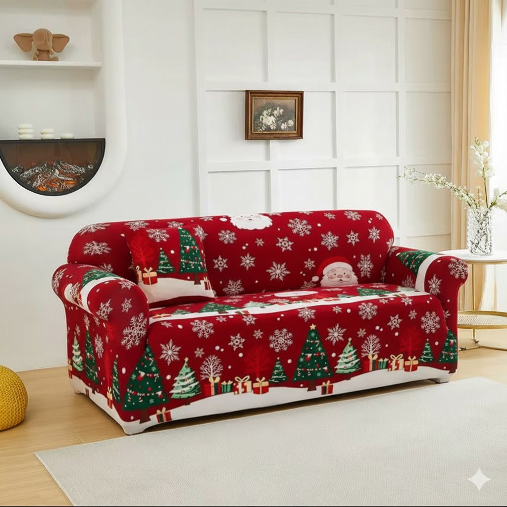 Encante sua casa neste Natal com a Capa de Sofá  Natalina Spandex Special - Encanto de Inverno, que une beleza, praticidade e alta qualidade em um só produto!