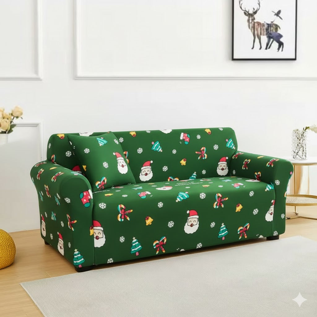 Encante sua casa neste Natal com a Capa de Sofá Natalina Spandex Special - Bom Velhinho, que une beleza, praticidade e alta qualidade em um só produto!