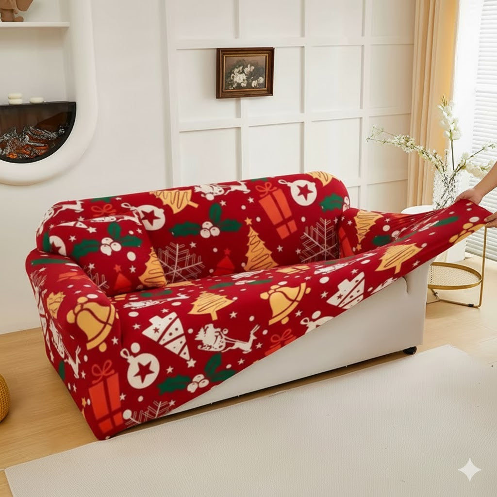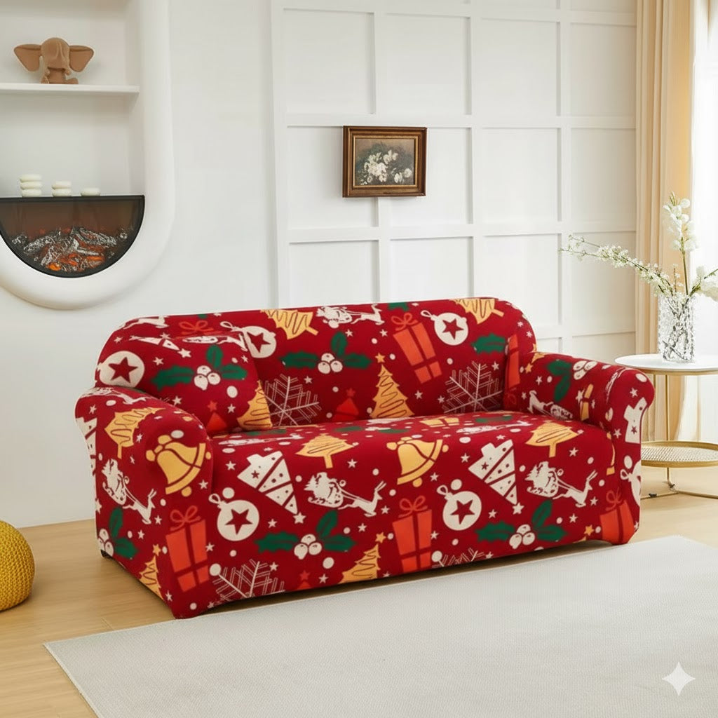 Encante sua casa neste Natal com a Capa de Sofá Natalina Spandex Special - Sonho de Natal, que une beleza, praticidade e alta qualidade em um só produto!