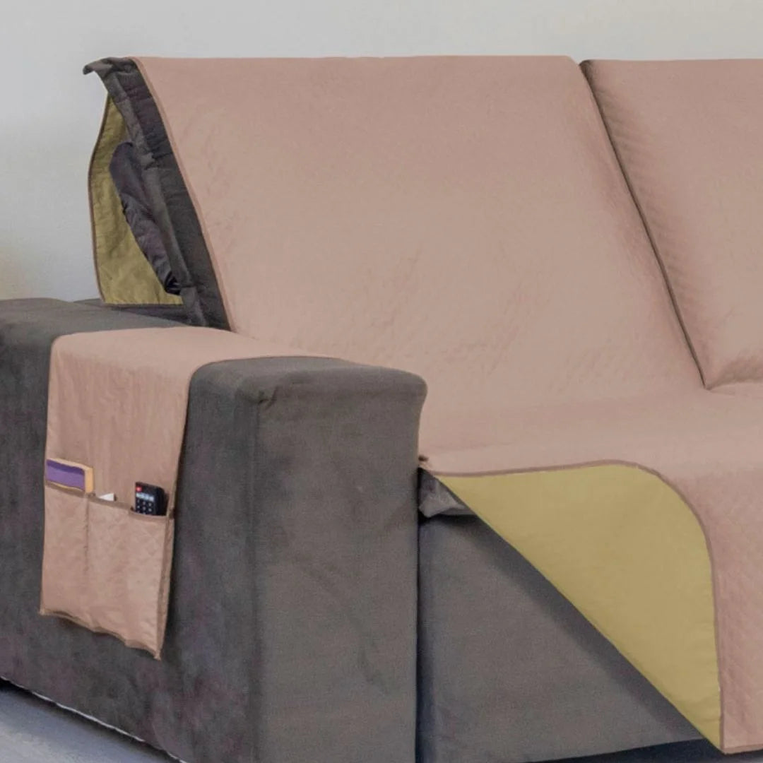 Conheça esta linda capa protetora para SOFÁ RETRÁTIL IMPERMEÁVEL DUPLA FACE CAQUI-PALHA dupla face de alta qualidade que protege, conserva e decora seus sofás de 1, 2, 3 ou 4 lugares.
